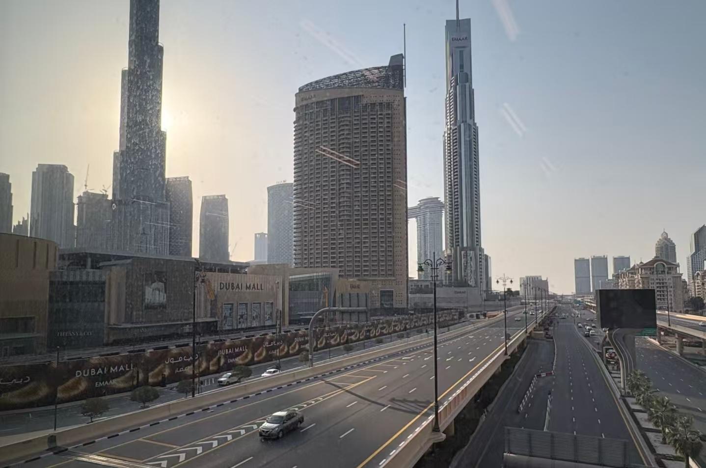3月1日,迪拜市区的马路上车来车往。受访者供图