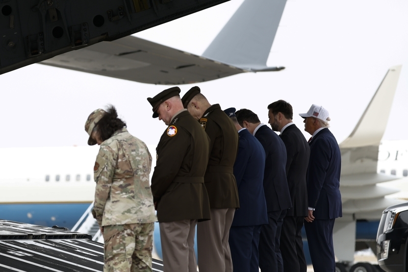 3月7日,特朗普等东谈主出席在对伊军事行径中示寂的6名好意思军士兵遗体派遣典礼 东方IC