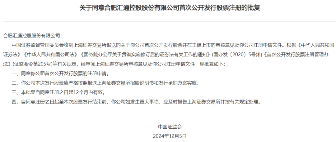 汇通控股报的沪市主板,上周通过注册。